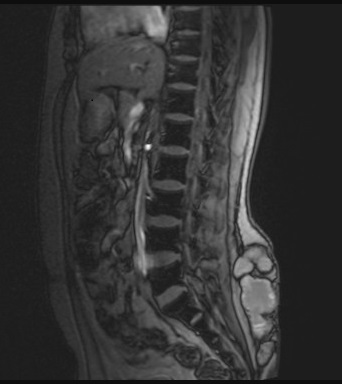 Imaging: MRI and CT of the lesion revealed a multiloculated subcutaneous collection without bony involvement.